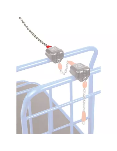 Chaîne d'attache murale pour sécuriser le premier chariot avec un serrure d'attache sur le mur.