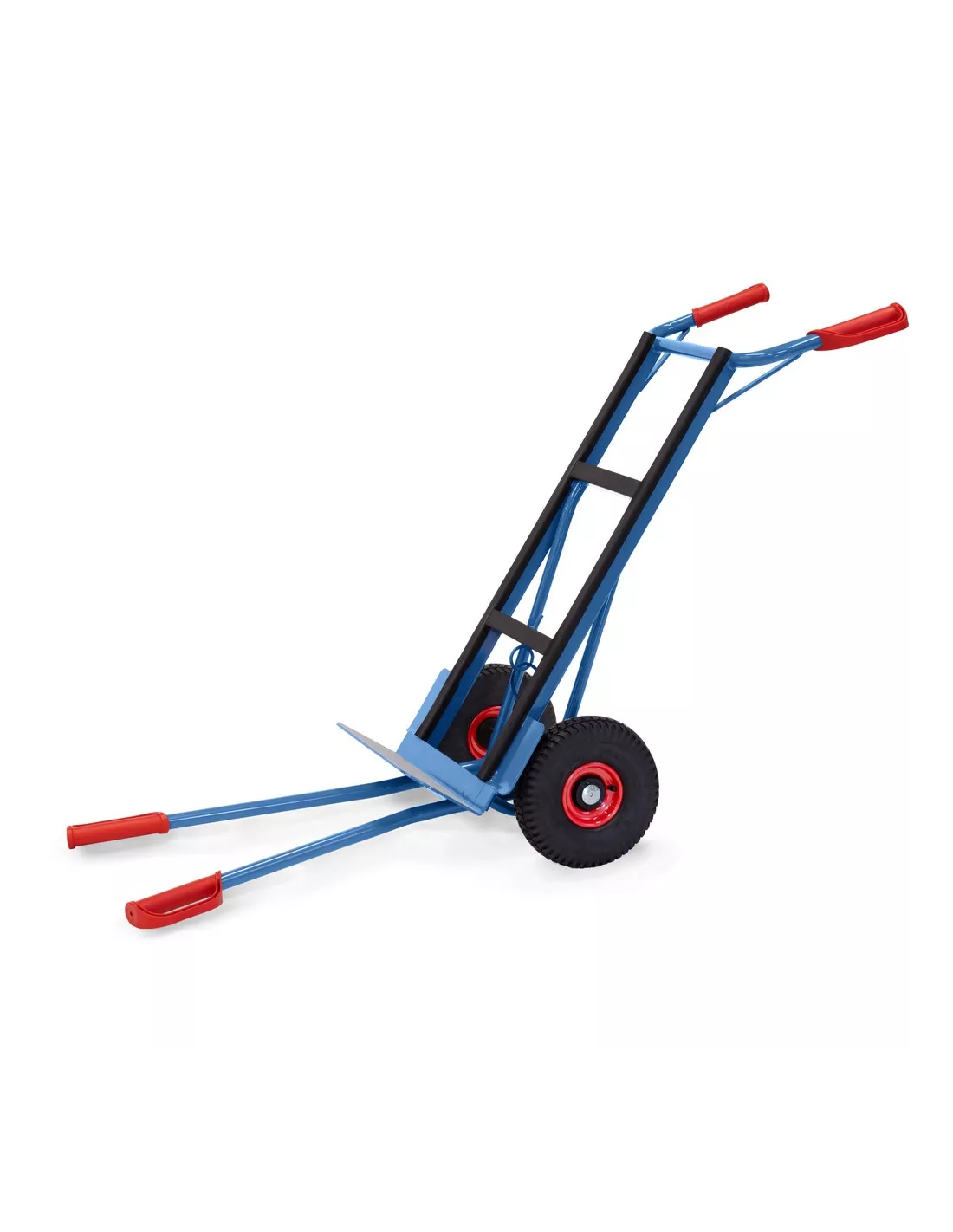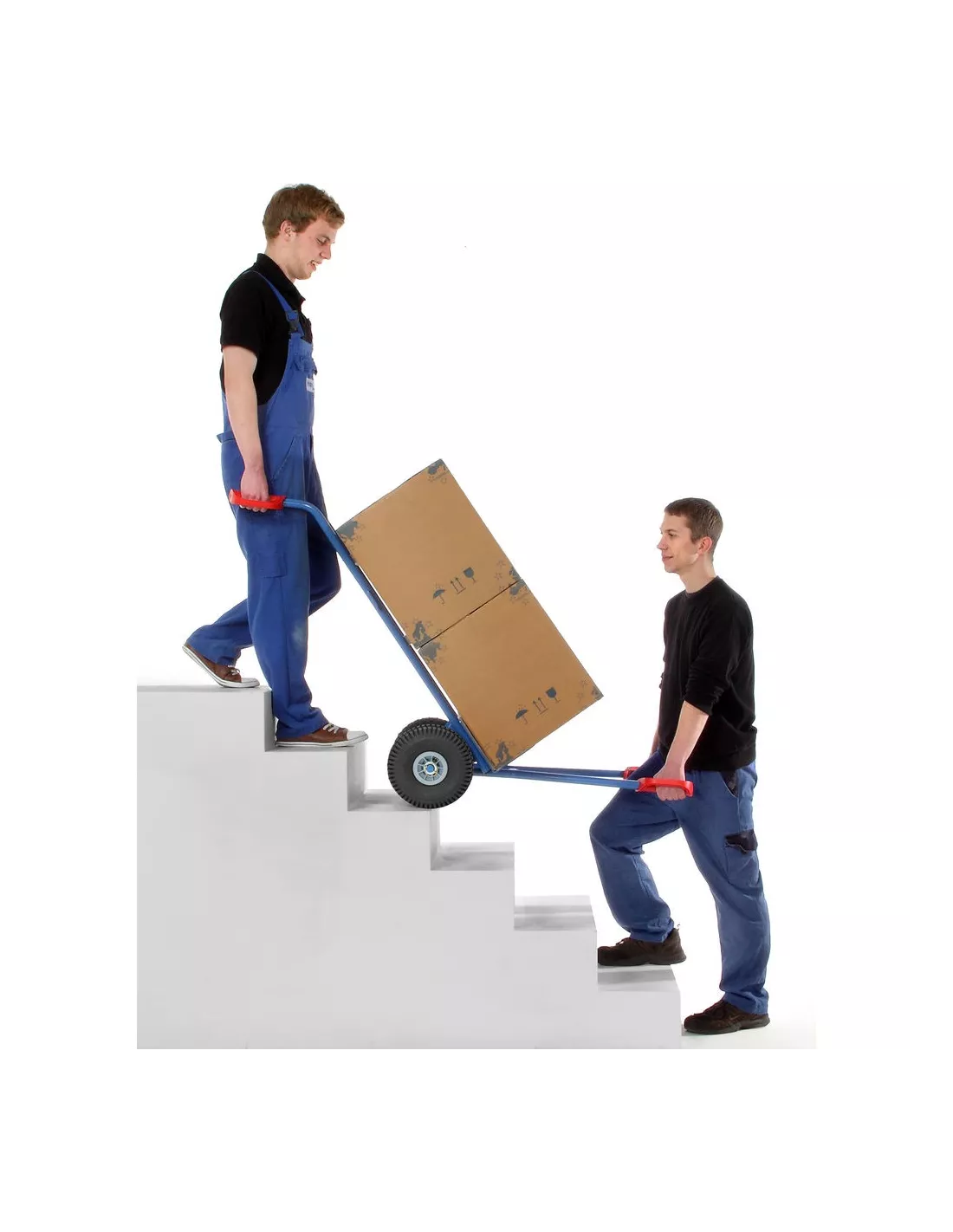 Conçu pour tous les diables sauf 11050, 11051 et 11052. Composé de 2 poignées en tube d'acier avec crochets et barre transversale soudées. Revêtement époxy bleu RAL 5007.