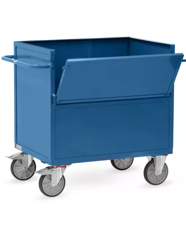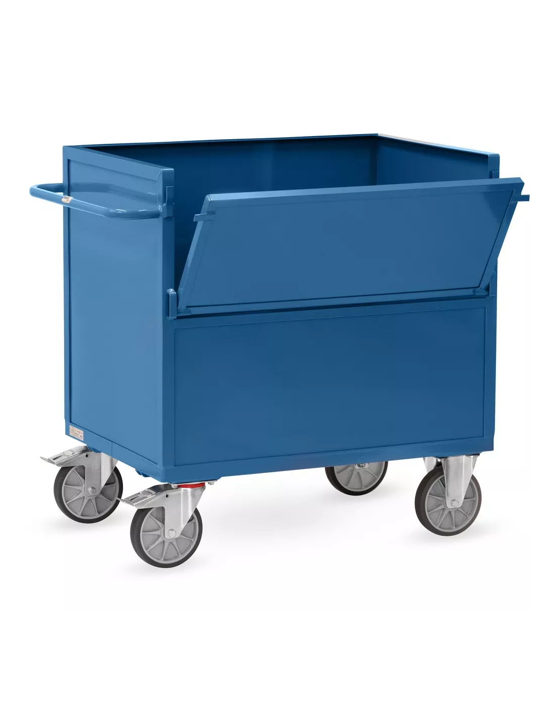 Dimensions utiles (L x l) : 1000 x 700 mm, Charge 600 kg, chariot caisse en tôle d'acier.