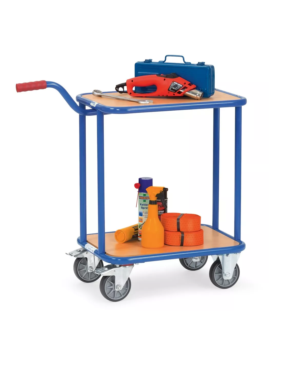 Charge 250 kg, dimensions utiles 600 x 450 mm, 2 plateaux bois.
