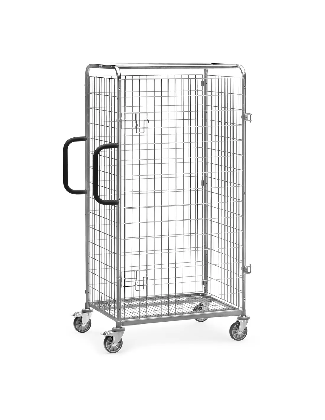 Porte battante. Treillis galvanisé, maille de 100 x 50 mm, charnières à boulonner, la porte peut se rabattre à 180° vers le corps du chariot, 2 loquets en fil zingué verrouillables par cadenas (Cadenas non fourni).