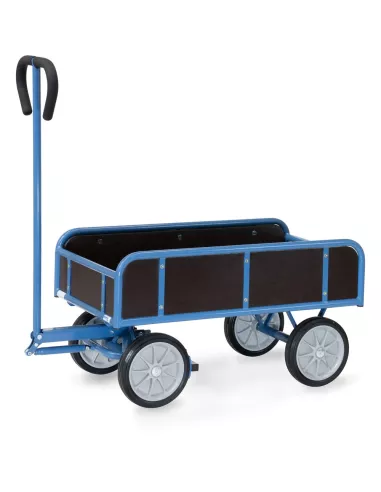 Dimensions utiles (L x l) : 945 x 545 mm - Pneus caoutchouc, Charge 400 kg, char à bras léger avec 2 essieux et 4 ridelles.