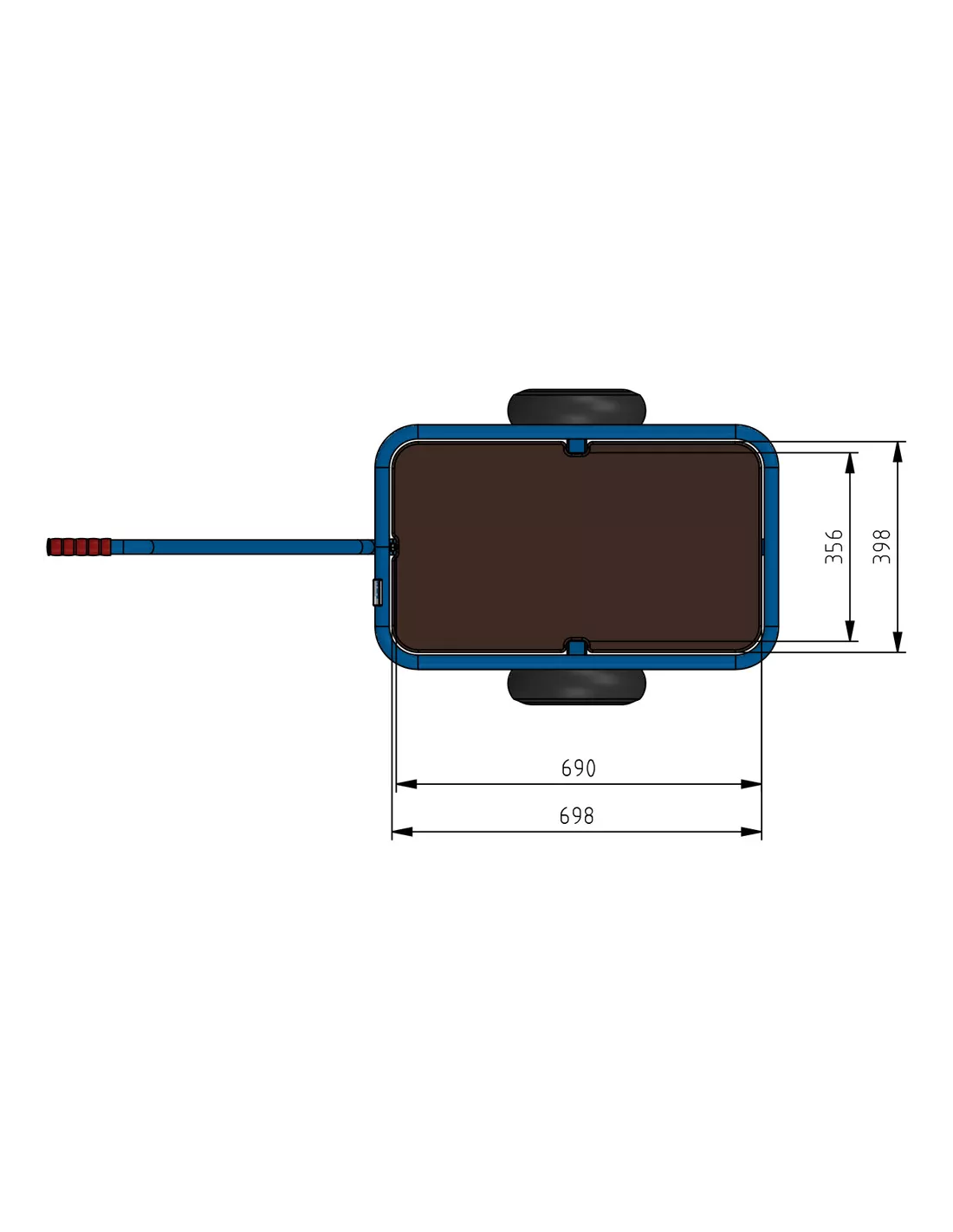 Char à bras léger en tube et profilé d'acier soudés, revêtement époxy bleu RAL 5007. Timon à boulonner. Plateau en contreplaqué