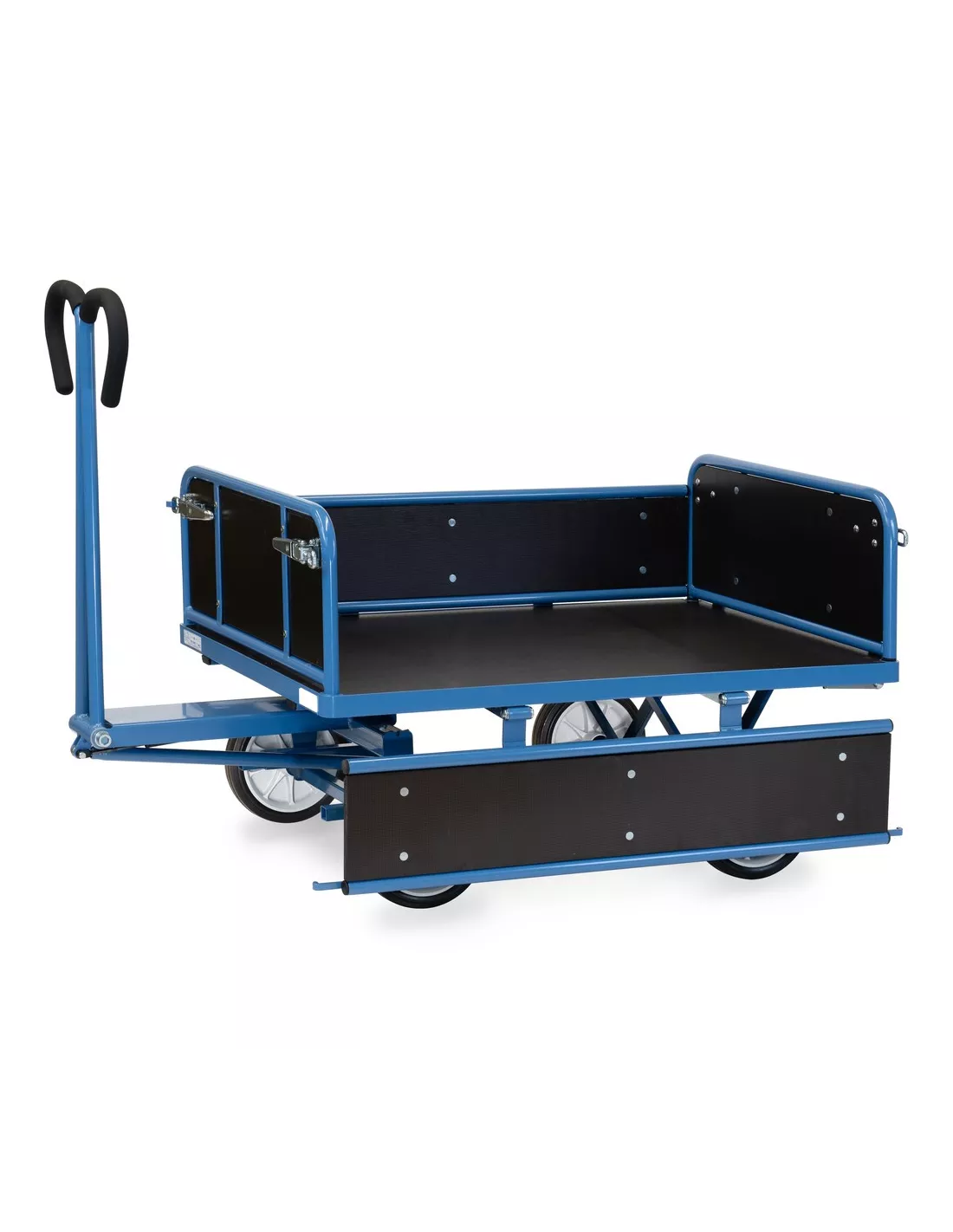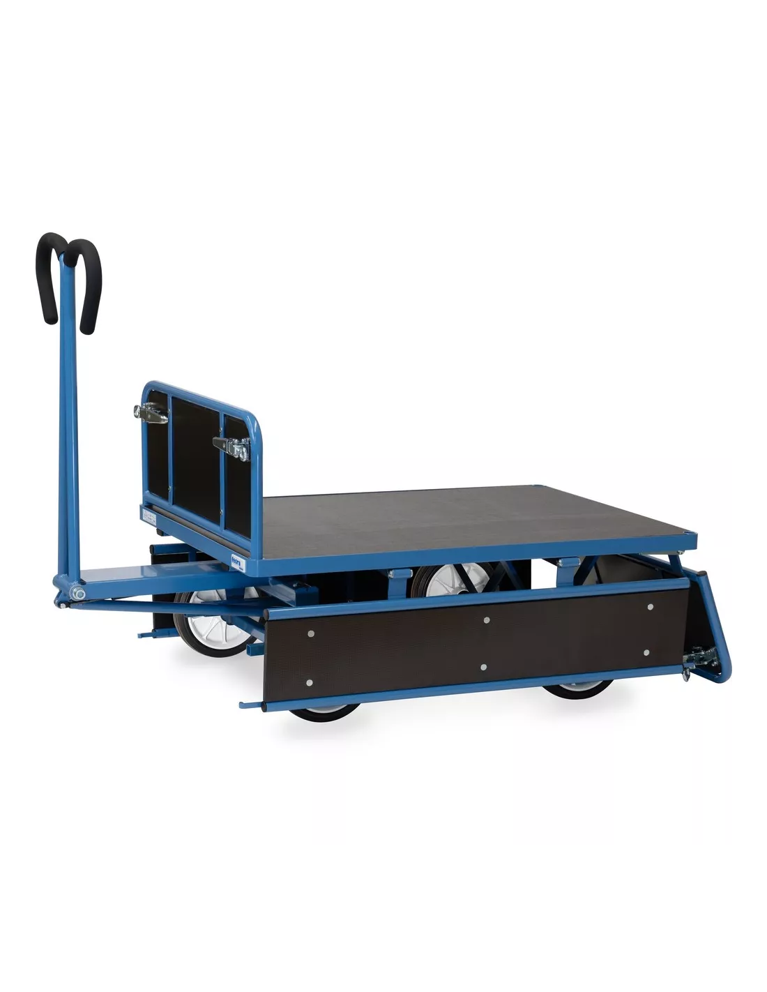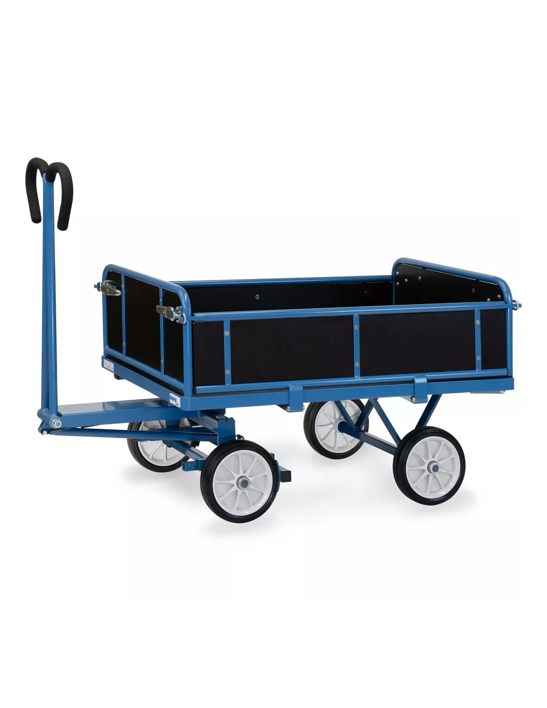 Dimensions utiles (L x l) : 1200 x 800 mm - Pneus gonflables, avec roues caoutchouc, 3 ridelles amovibles