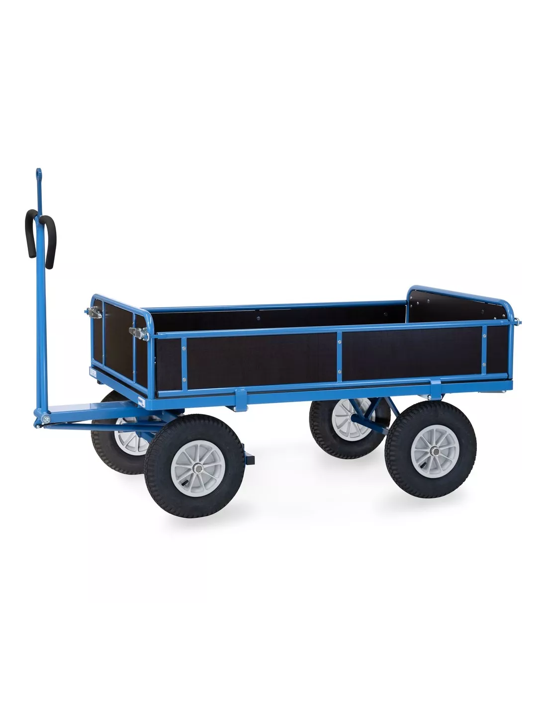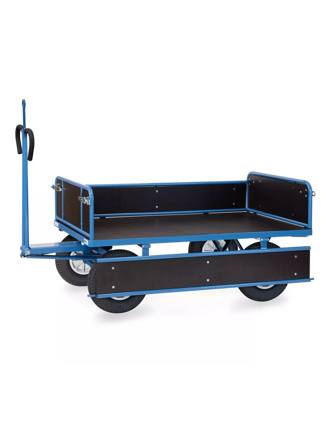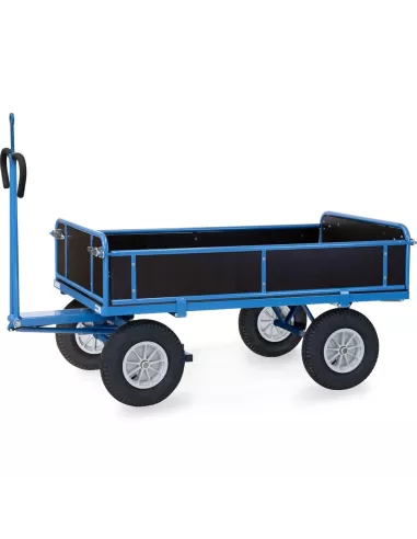 Dimensions utiles (L x l) : 1600 x 900 mm - Pneus caoutchouc, avec roues gonflables, 3 ridelles amovibles, avec oeillet de traction