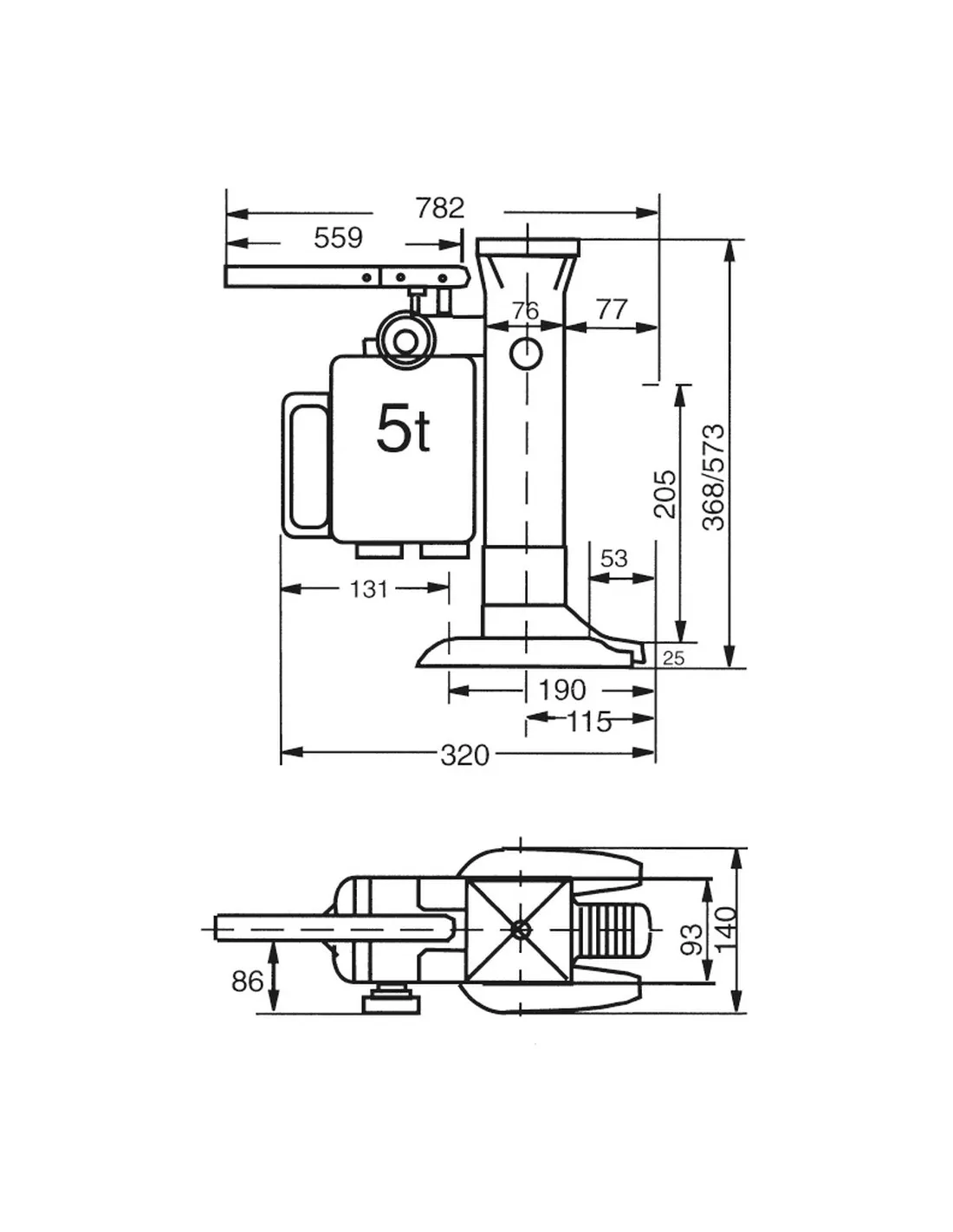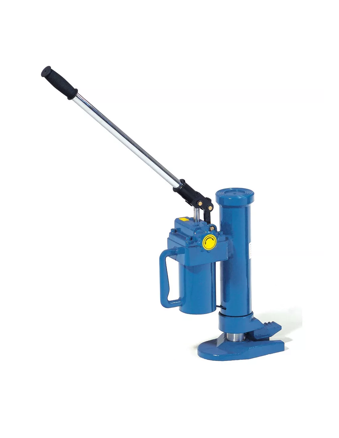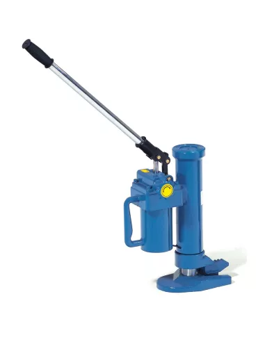 Construction solide et compacte en acier. Revêtement époxy RAL 5007. Permet de soulever de lourdes charges. Montée par pompe hydraulique à tige. Vis de décharge garantissant une descente souple et sûre, l'appareil pivote sur 360°. Levée sur platine mm: 25-230 mm; Levée prise sur partie: 368-573 mm.