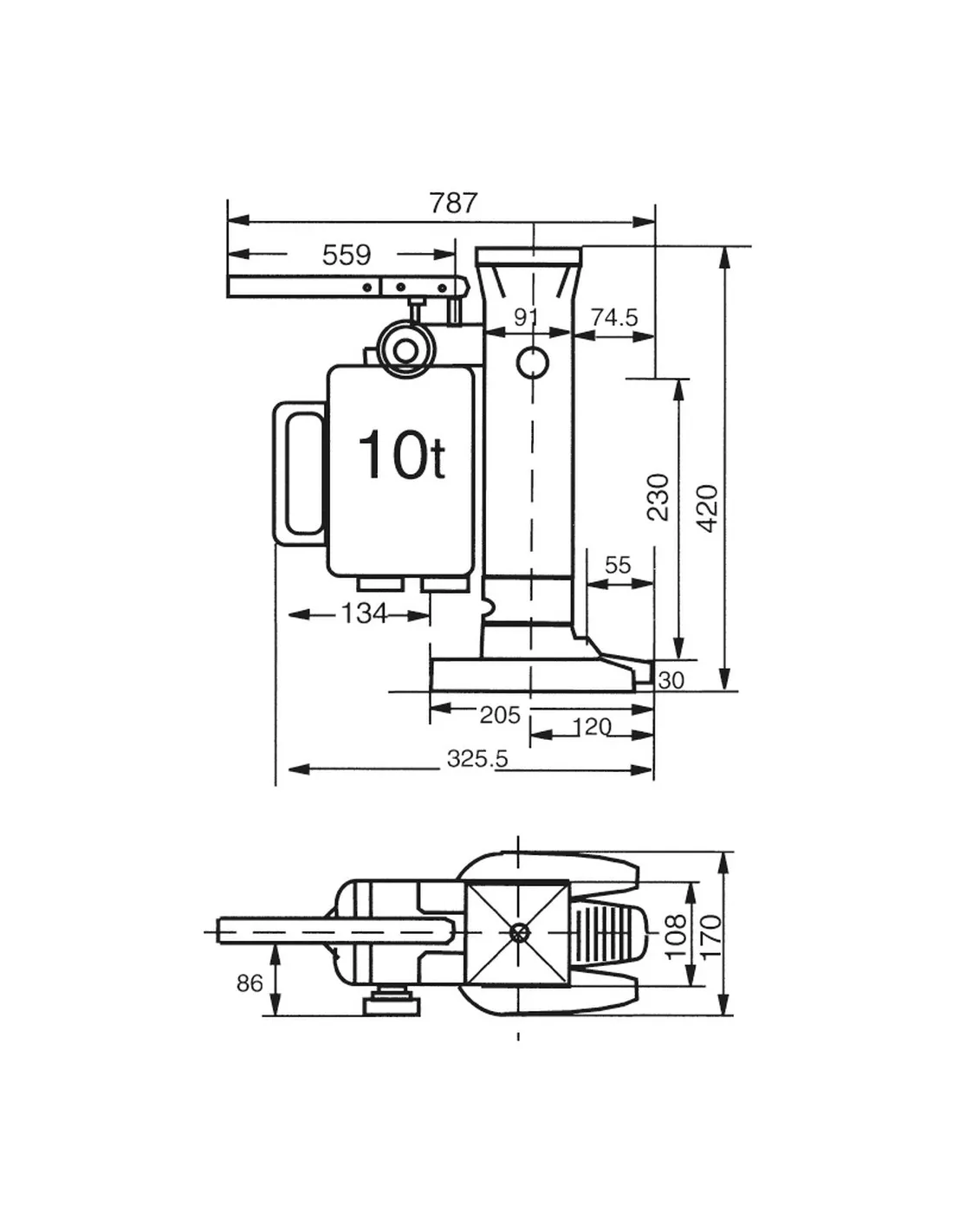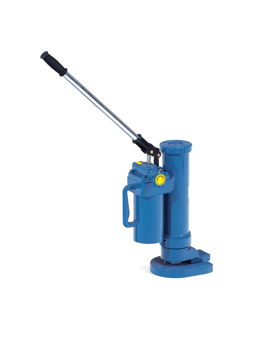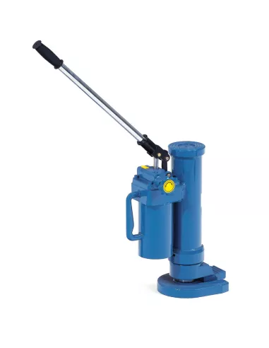 Construction solide et compacte en acier. Revêtement époxy RAL 5007. Permet de soulever de lourdes charges. Montée par pompe hydraulique à tige. Vis de décharge garantissant une descente souple et sûre, l'appareil pivote sur 360°. Levée sur platine mm: 30-260 mm ; Levée prise sur partie mm: 420-650 mm.