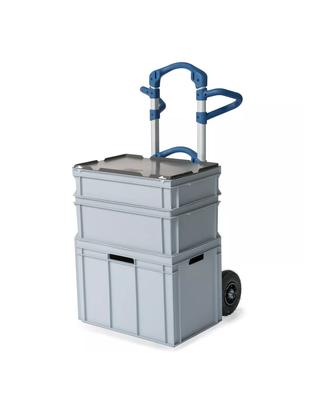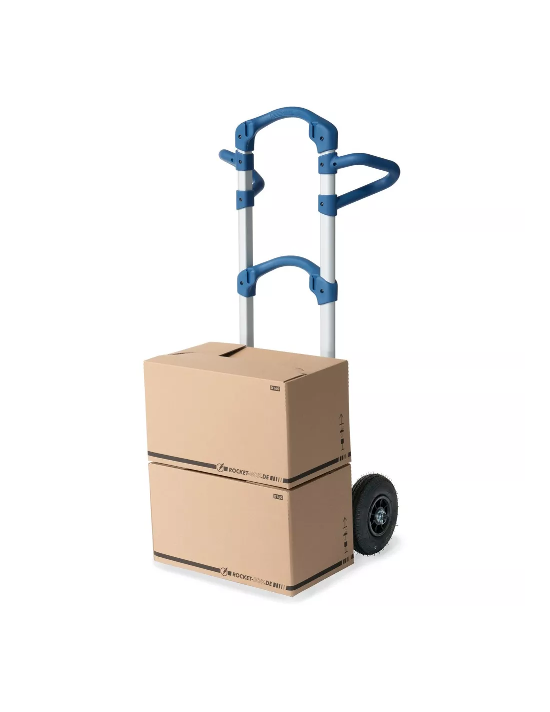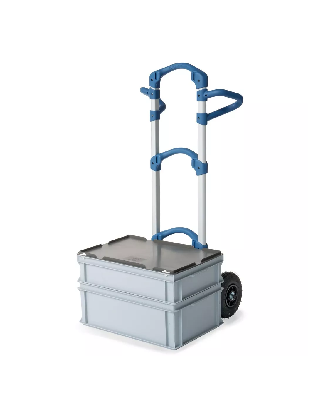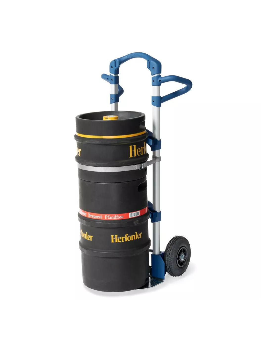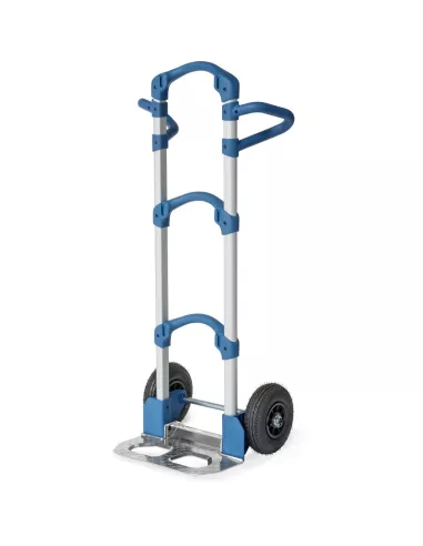Le diable alu compact „Wuppi“ est un diable universel très pratique avec bavette rabattable. Les poignées ergonomiques permettent une prise en main à une hauteur appropriée répondant à tous types de déplacements, tout en protégeant l‘opérateur des risques de blessures aux mains. Le cintrage permet la prise en charge d‘éléments cylindriques. Sa construction en aluminium très robuste et soignée et dispose d'une bavette alu et de pièces plastiques de qualité. Le diable est équipé de roues gonflables très solides avec moyeu à roulements à billes facilement remplaçables. Poignées avec revêtement agréable au toucher. Configuration très compacte, mise en place de la bavette par simple pression du pied. Idéal pour une utilisation en déplacement comme par exemple pour des livraisons. Livré démonté, montage facile.