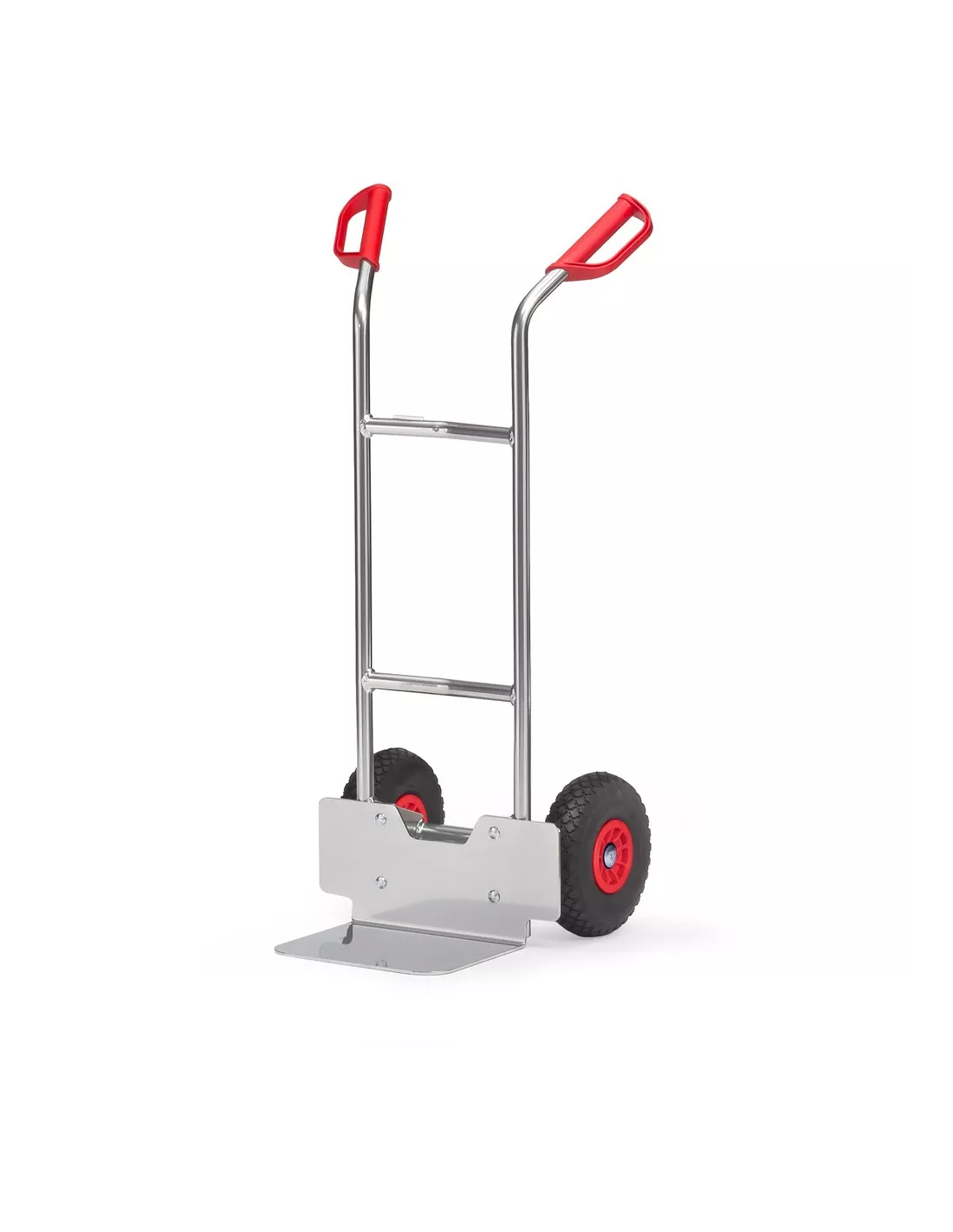 Ensemble mécano-soudé en aluminium. Soigneusement soudé sans revêtement, léger et maniable. Poignées de sécurité en plastique dur. Tablier cintré permettant d'embarquer des éléments ronds tels que rouleaux, bidons, seaux etc. Bavette en tôle d'alu à boulonner et remplaçable. Roues en mousse polyuréthane increvables, moyeu à roulement à rouleaux. Livré avec bavette démontée.