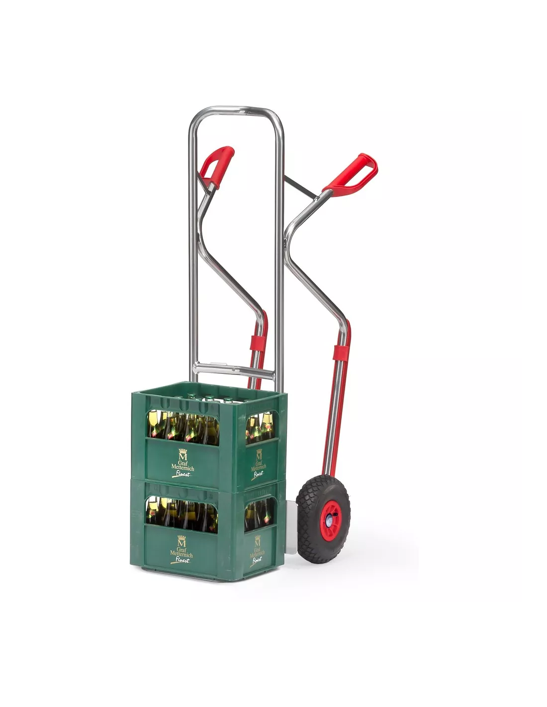 Ensemble mécano-soudé en aluminium. Soigneusement soudé sans revêtement, léger et maniable. Poignées de sécurité en plastique dur et patins amovibles. Tablier cintré permettant d'embarquer des éléments ronds tels que rouleaux, bidons, seaux etc. Bavette en tôle d'alu à boulonner et remplaçable. Roues gonflables, moyeu à roulement à rouleaux. Livré avec bavette démontée.