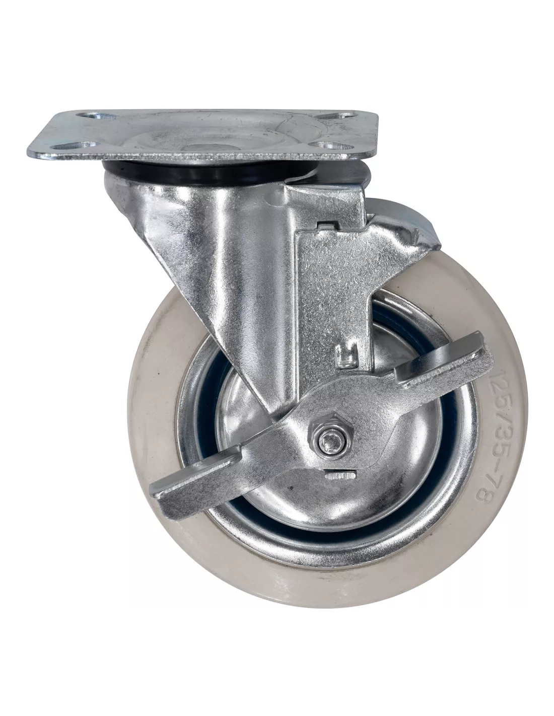 Roue pivotante avec à bandage caoutchouc. Avec frein. Armature en tôle d'acier galvanisée. Pour 3101.