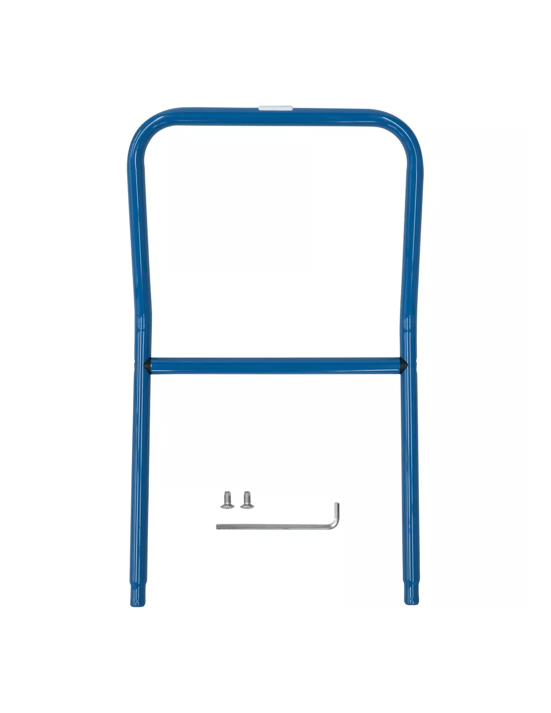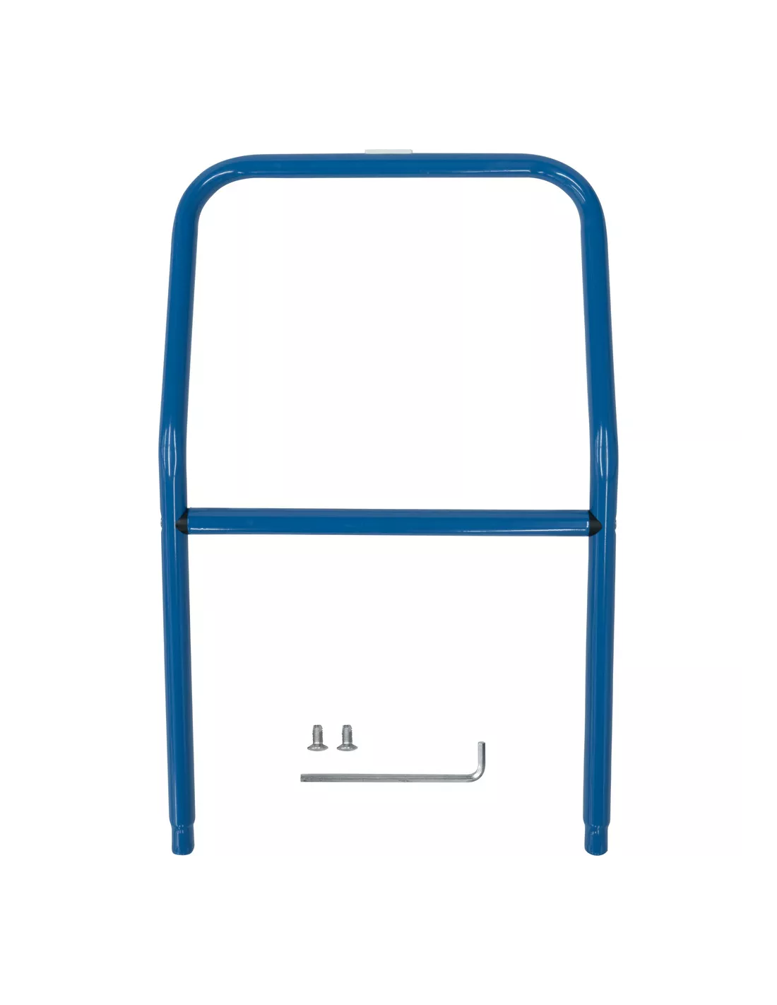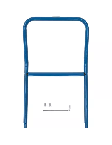 Barre pour poussée de chariots de magasin. En tube d'acier cintré, revêtement époxy bleu RAL 5007. Incl. matériel de montage sur côté des roulettes pivotantes des chariots.
