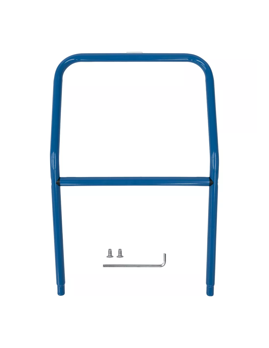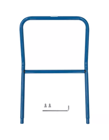 Barre pour poussée de chariots de magasin. En tube d'acier cintré, revêtement époxy bleu RAL 5007. Incl. matériel de montage sur côté des roulettes pivotantes des chariots.