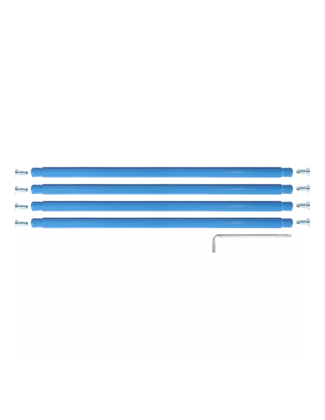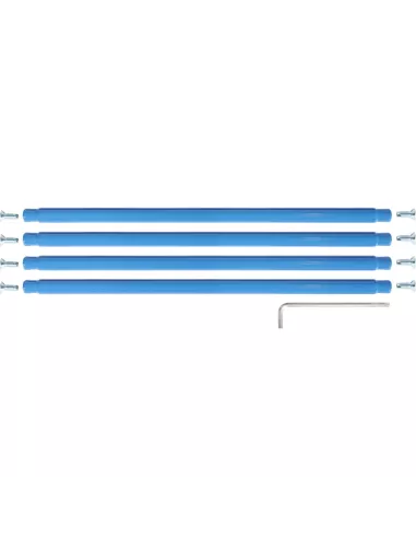Tubes de maintien pour servantes avec 2 plateformes. En tube d'acier cintré, revêtement époxy bleu RAL 5007. Incl. matériel de montage à visser sur le chariot de base et la plateforme de table.