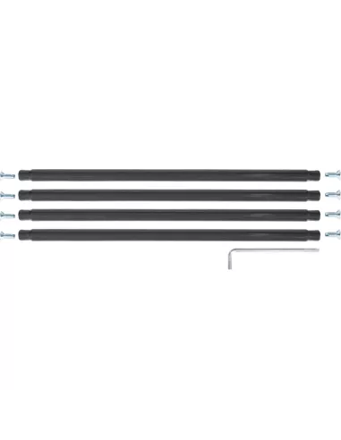 Tubes de maintien pour servantes avec 2 plateformes. En tube d'acier cintré, revêtement époxy gris anthracite RAL 7016. Incl. matériel de montage à visser sur le chariot de base et la plateforme de table.