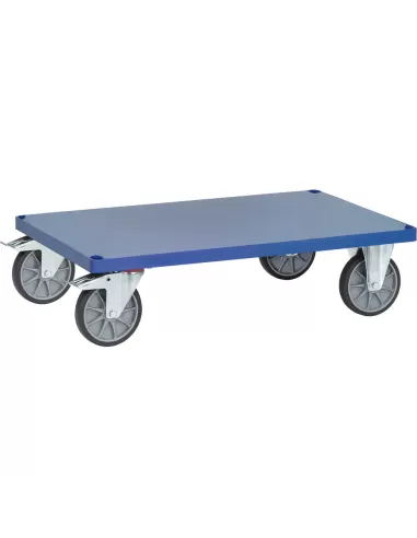 Châssis du système modulaire MultiVario, revêtement époxy bleu RAL 5007. Plateau en tôle d'acier soudé de niveau dans l'armature. Les éléments du système sont simplement insérés et vissés.