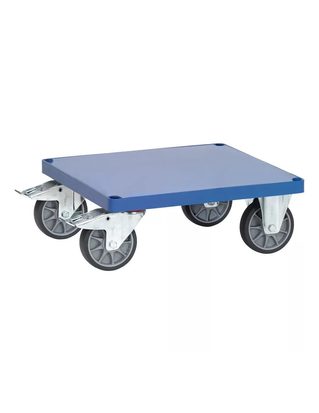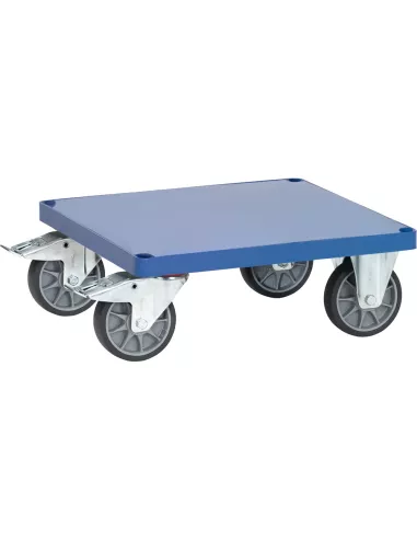 Châssis du système modulaire MultiVario, revêtement époxy bleu RAL 5007. Plateau en tôle d'acier soudé de niveau dans l'armature. Les éléments du système sont simplement insérés et vissés.