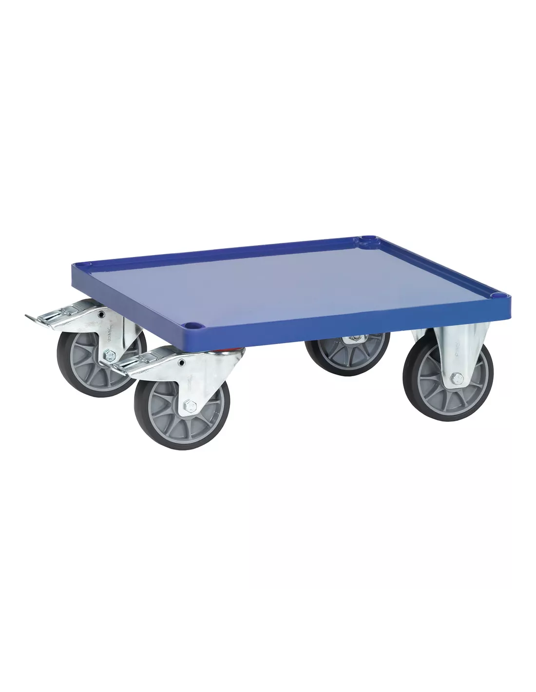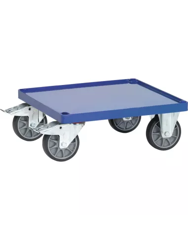 Châssis du système modulaire MultiVario, revêtement époxy bleu RAL 5007. Plateau en tôle d'acier soudé avec rebord de 10 mm de haut. Les éléments du système sont simplement insérés et vissés.