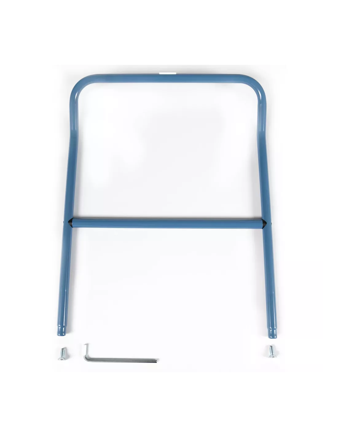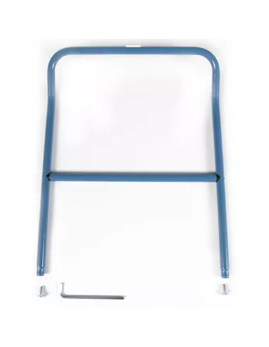 Barre pour poussée de chariots à dossier de poussée. En tube d'acier cintré, revêtement époxy bleu RAL 5007. Incl. matériel de montage sur côté des roulettes pivotantes des chariots.