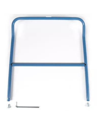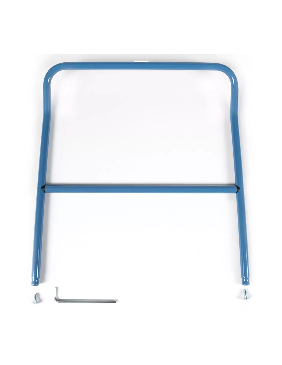 Barre pour poussée de chariots à dossier de poussée. En tube d'acier cintré, revêtement époxy bleu RAL 5007. Incl. matériel de montage sur côté des roulettes pivotantes des chariots.