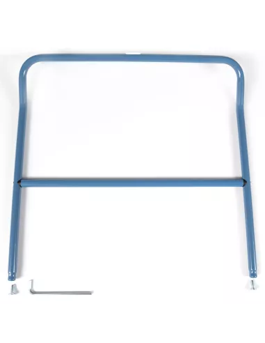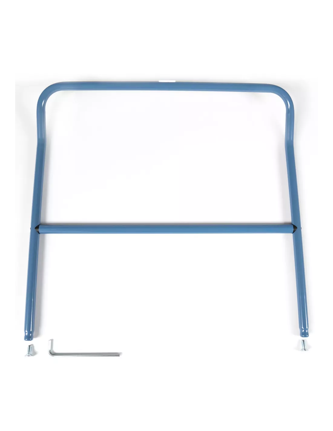 Barre pour poussée de chariots à dossier de poussée. En tube d'acier cintré, revêtement époxy bleu RAL 5007. Incl. matériel de montage sur côté des roulettes pivotantes des chariots.