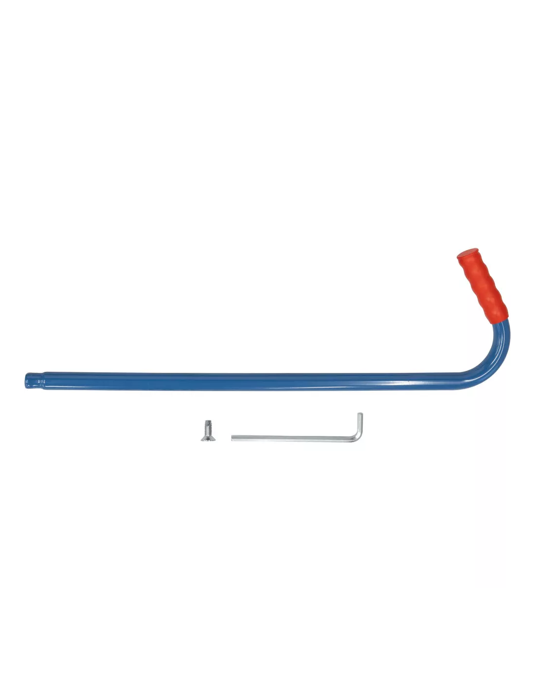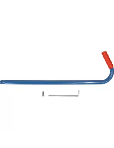 Barre pour poussée à partir de différentes positions. En tube d'acier cintré, revêtement époxy bleu RAL 5007. Incl. matériel de montage sur des chariots.