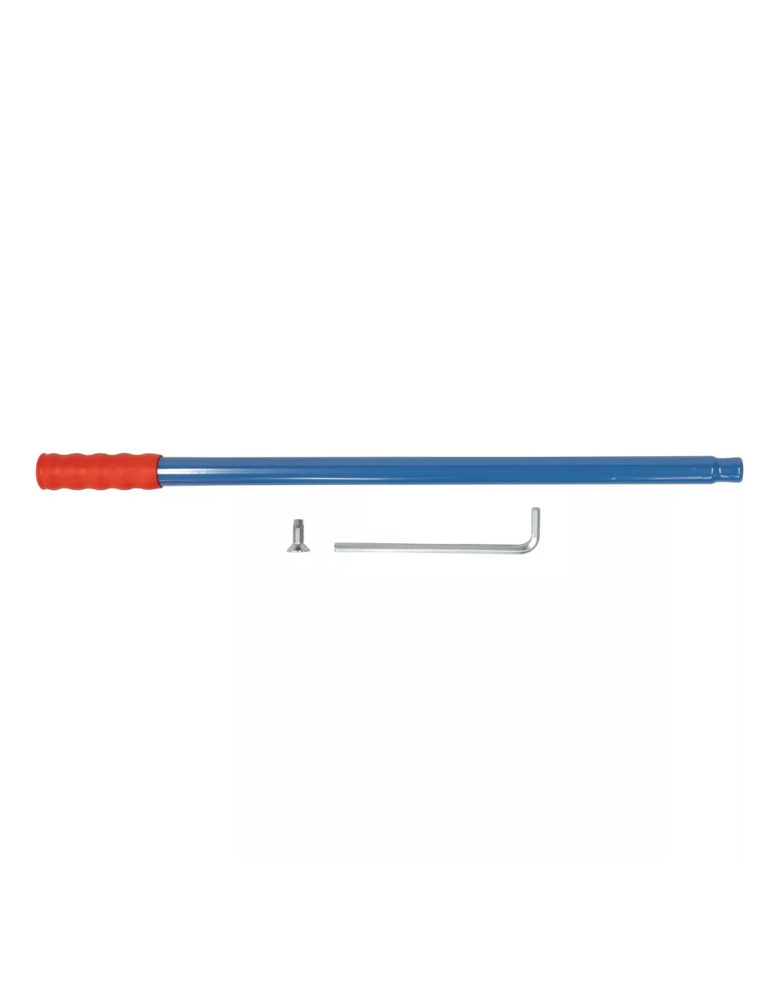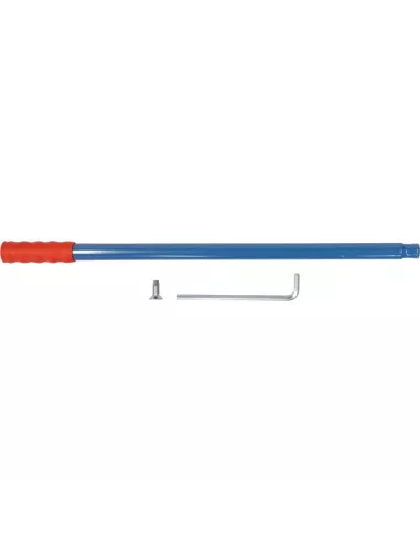 Barre pour poussée à partir de différentes positions. En tube d'acier cintré, revêtement époxy bleu RAL 5007. Incl. matériel de montage sur des chariots.