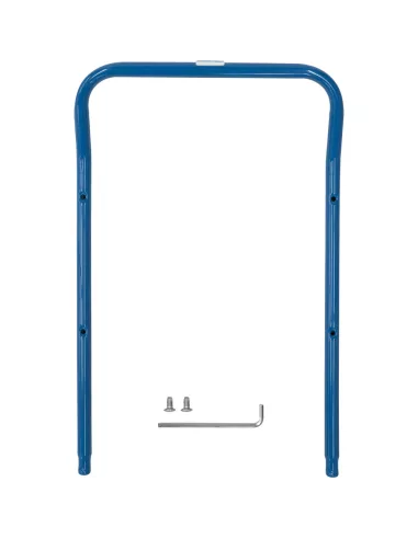 Barre pour poussée de servantes légers. En tube d'acier cintré, revêtement époxy bleu RAL 5007. Incl. matériel de montage sur côté des roulettes pivotantes des chariots.