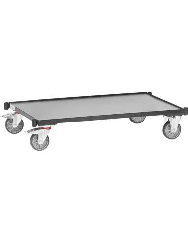 Châssis du système modulaire, revêtement époxy gris anthracite RAL 7016. Plateau en mélaminé surface gris moyen. Les éléments du système sont simplement insérés et vissés.