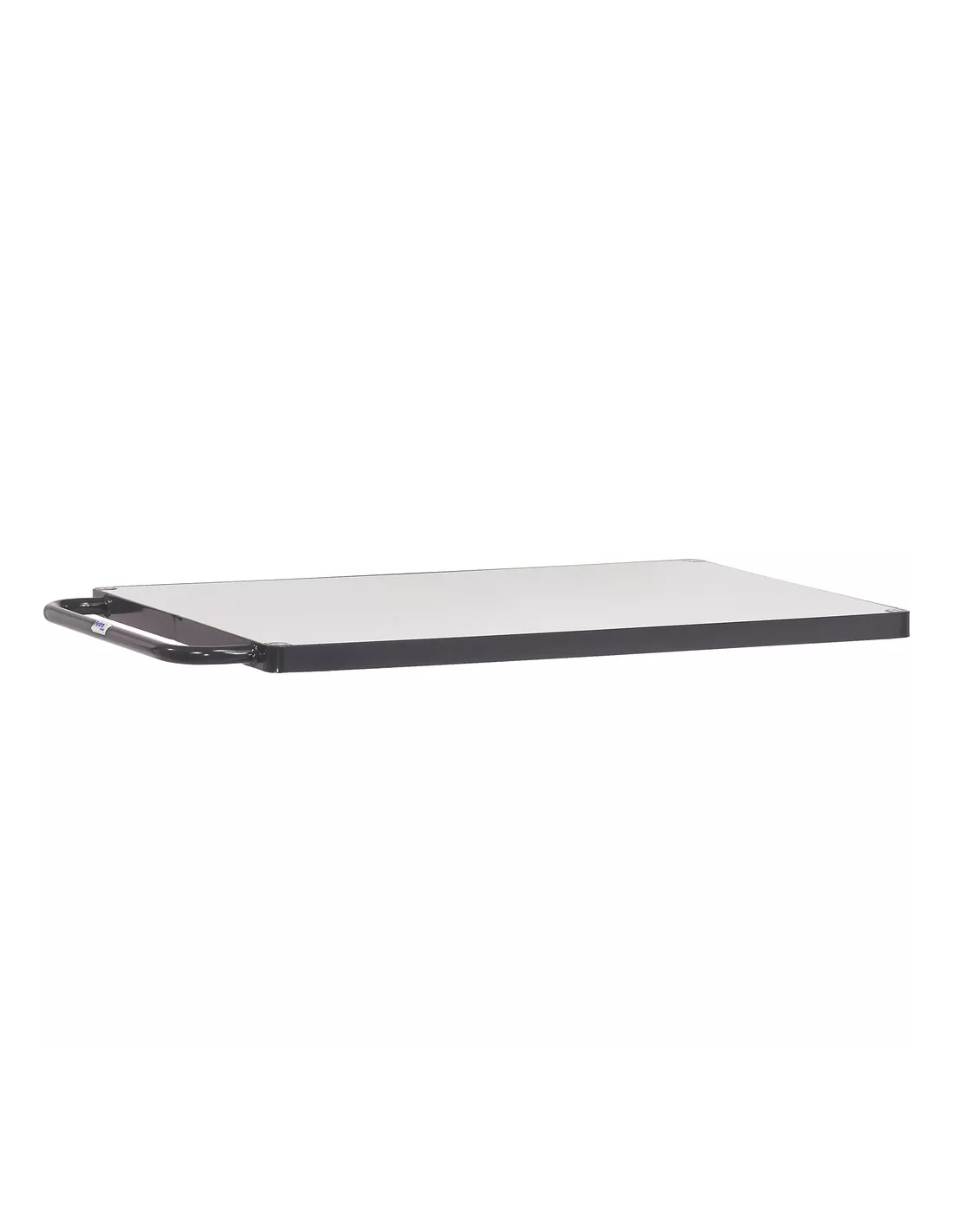 Plateforme de table ESD du système modulaire MultiVario, revêtement époxy conducteurs d'électricité gris foncé RAL 7015. Plateau en mélaminé conducteur d'électricité conforme à la Norme DIN 68765, surface gris clair. Les éléments du système sont simplement insérés et vissés.