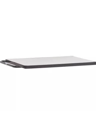 Plateforme de table ESD du système modulaire MultiVario, revêtement époxy conducteurs d'électricité gris foncé RAL 7015. Plateau en mélaminé conducteur d'électricité conforme à la Norme DIN 68765, surface gris clair. Les éléments du système sont simplement insérés et vissés.
