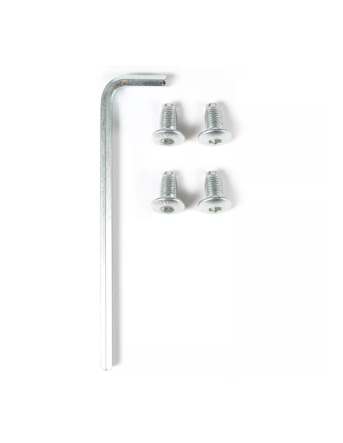 Ce sachet contient quatre vis galvanisées à tête ronde et une clé à six pans creux. Les vis sont nécessaires pour fixer les différentes pièces du système des chariots fetra®.