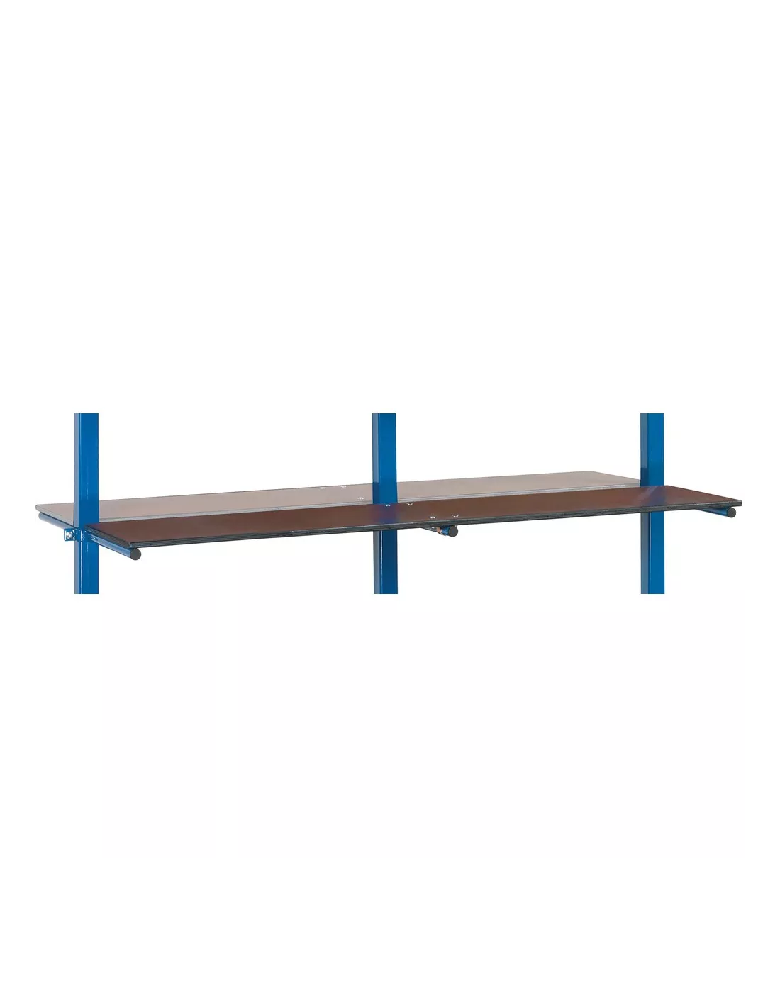 Plateau en aggloméré de 15 mm d'épaisseur avec les 2 surfaces plastifiées. L'une rugueuse antidérapante, l'autre lisse. Fixation par platine à visser.