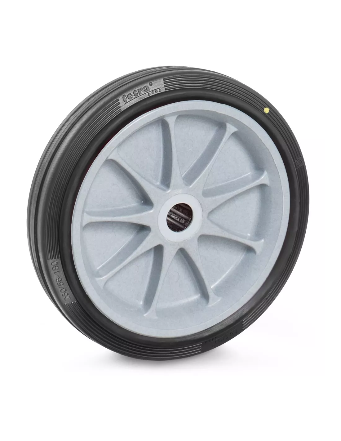 Roue ESD-caoutchouc montée sur jante en plastique, moyeu à roulement à rouleaux. Conductrice d'électricité.