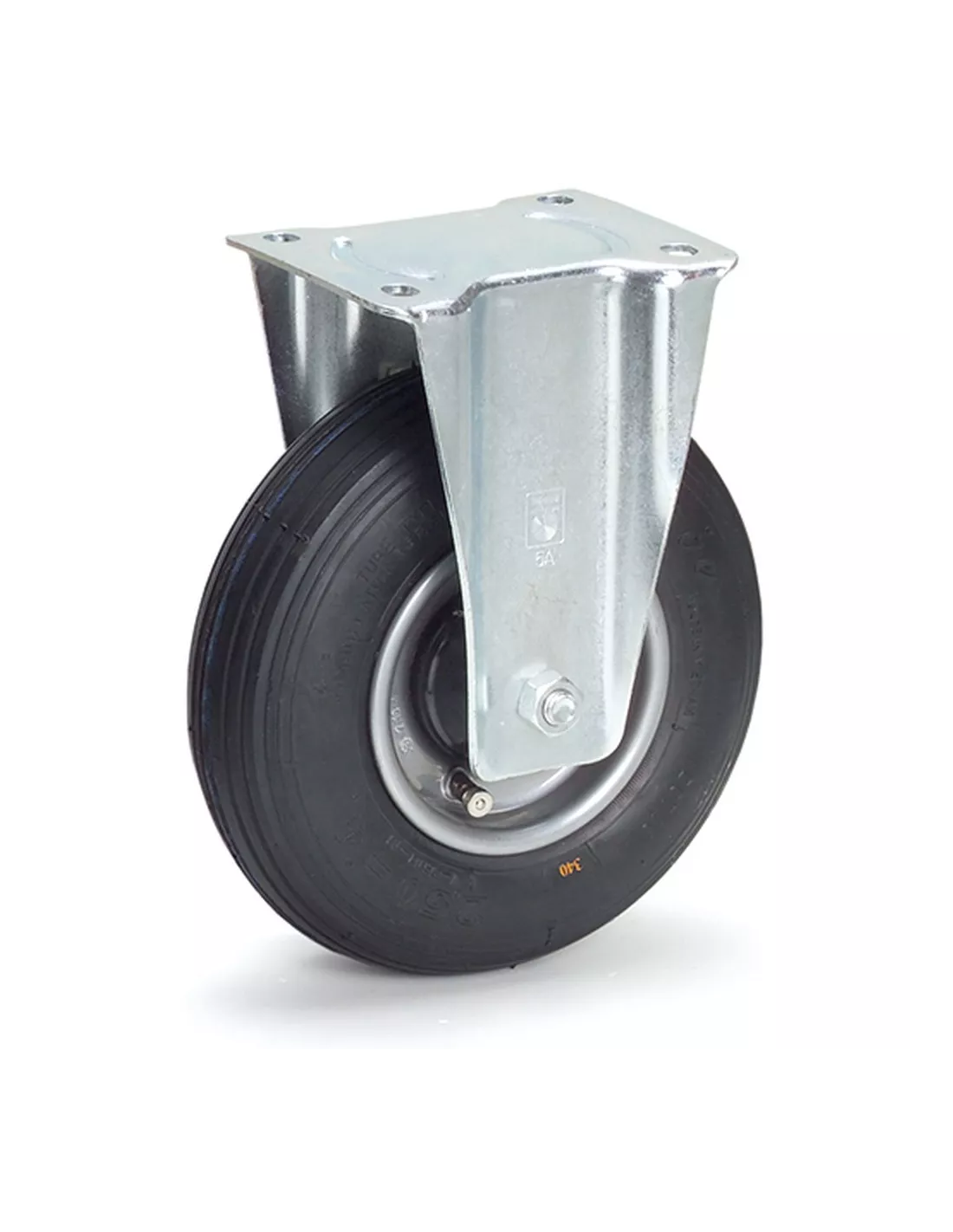 220 x 70 mm. Armature en tôle d'acier galvanisée. Roue gonflable montée sur jante en tôle d'acier, moyeu à roulement à rouleaux.