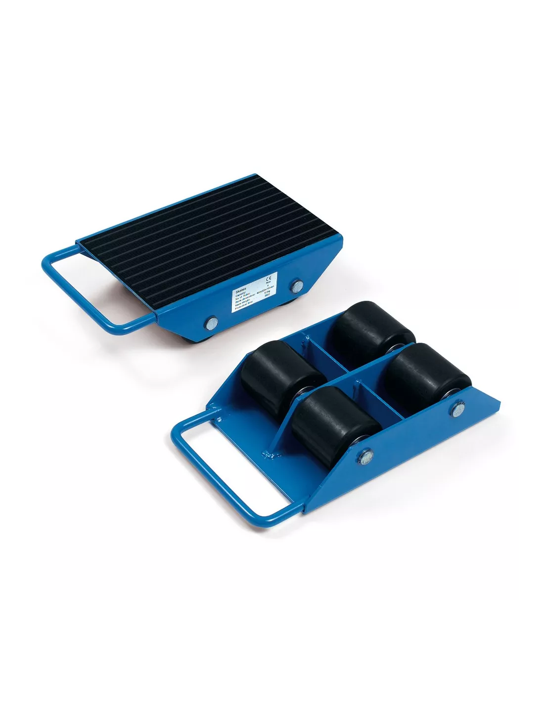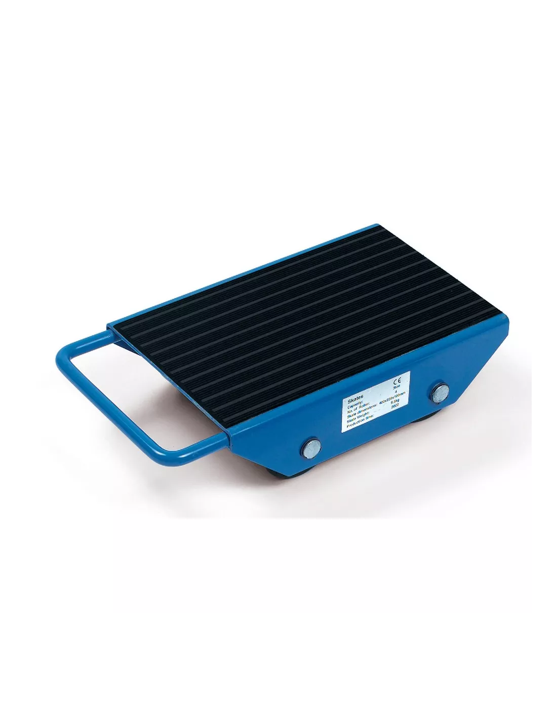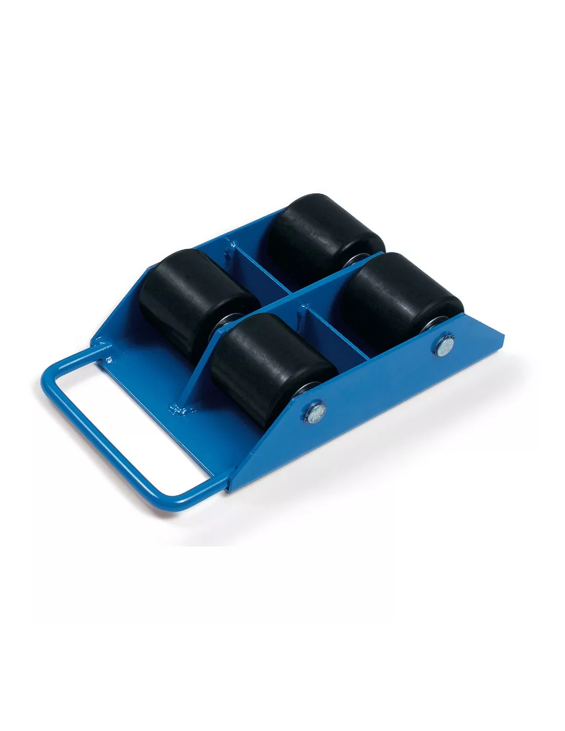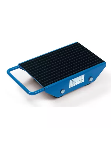 Construction solide en acier avec poignée en tube d'acier, revêtement époxy bleu RAL 5007. Platine recouverte de caoutchouc antidérapant. Pour un transport aisé et sûr d'objets lourds tels que: bacs, caisses, machines, etc. Grands galets en nylon à roulement à billes.Dimensions extérieures (LxlxH): 400 x 228 x 100 mm. Ø x largeur mm: 85 x 85 mm. Livraison: 1 pièce
