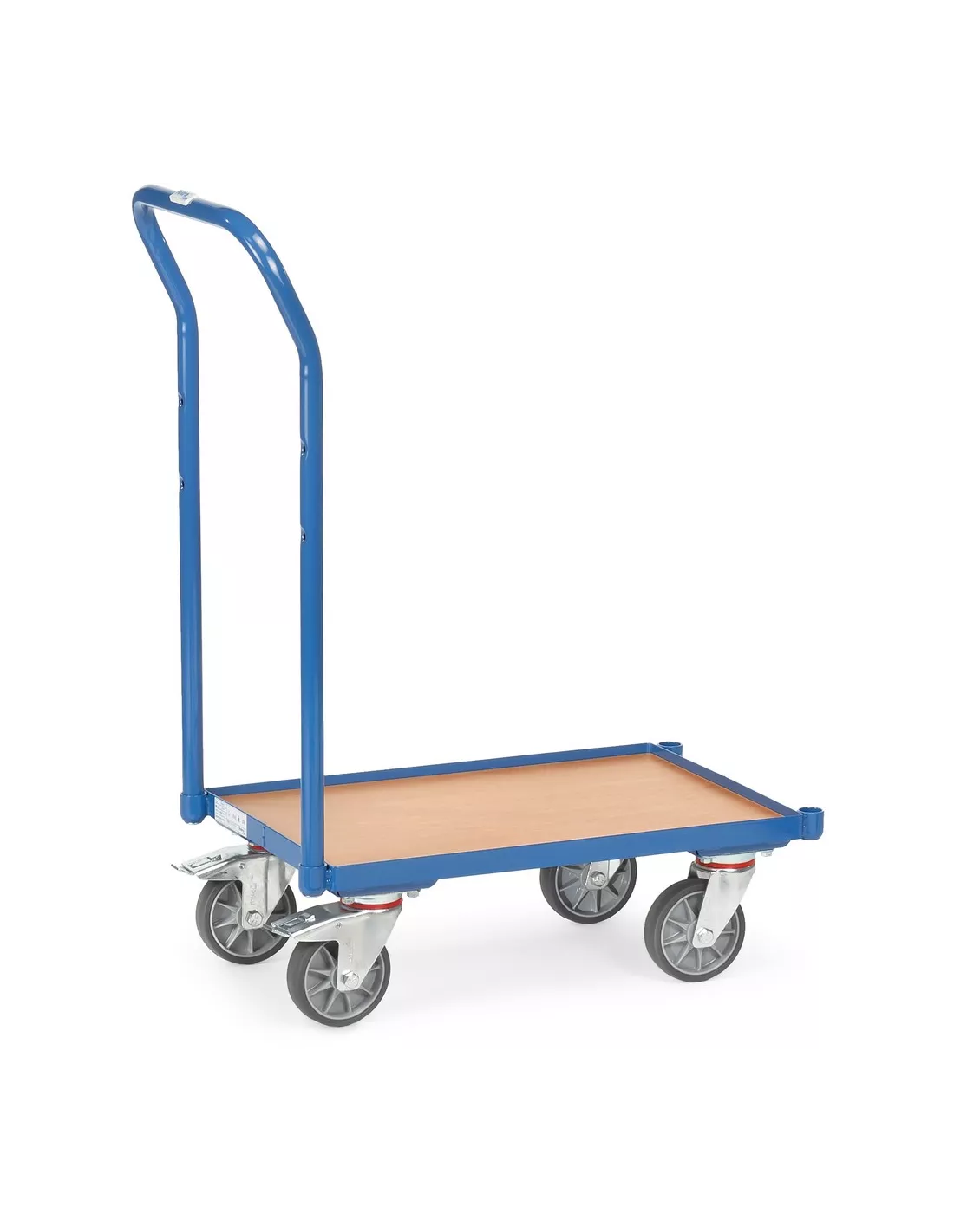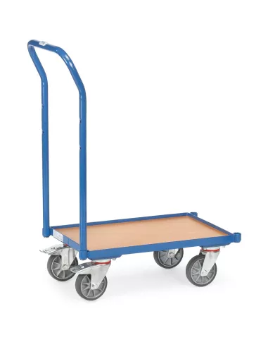 rouleur de bacs avec plateau en mélaminé avec rebord et dossier de poussée